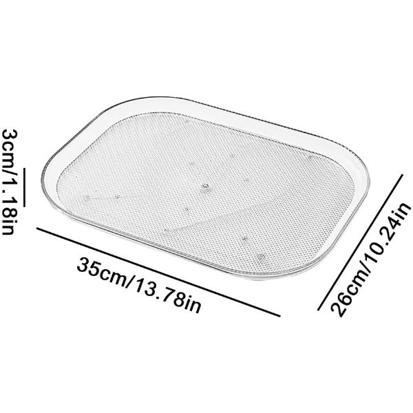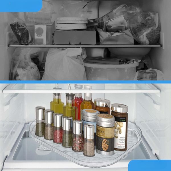 Поддържайте хладилника си чист и подреден с нашата прозрачна правоъгълна тава за хладилник. Този въртящ се на 360° органайзер за хладилник е идеален за лесен достъп и максимално използване на пространството. Той е лесен за почистване, има неплъзгащи се вендузи и не изисква монтаж.