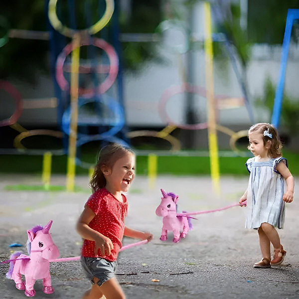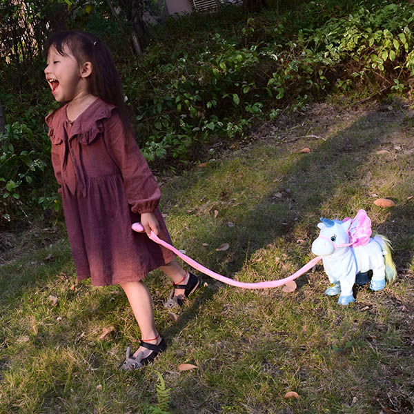 Заменете обикновените играчки на децата си с този забавен еднорог, който ходи, пее и издава възхитителни звуци с едно докосване! Децата ще обичат да превключват между две песни, да стискат каишката му и да се гушкат в изключително меката му памучна козина. Насладете се на светещите лица на децата си, когато играят с новия си най-добър приятел.