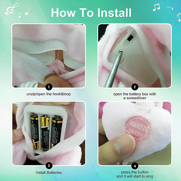 Можете лесно да получите достъп до отделението за батериите чрез велкро отвор на гърба на играчката. Завъртете превключвателя на „ON“ и магията започва. Изработена от висококачествени материали, Рокси е мека, издръжлива и безопасна за децата.