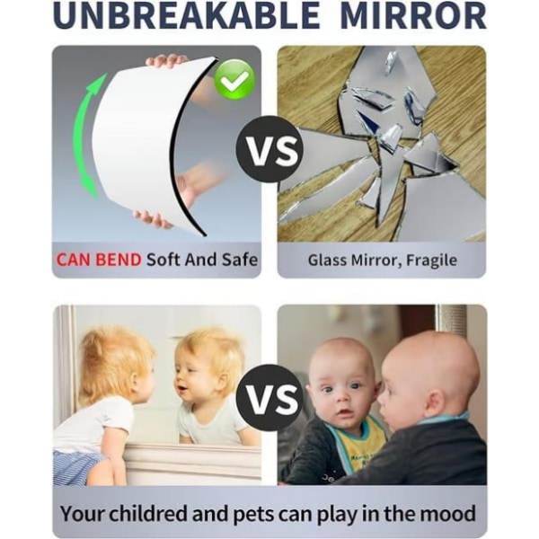 Изработено от полистирен, това огледало е безопасно, гъвкаво и няма да се счупи при падане.