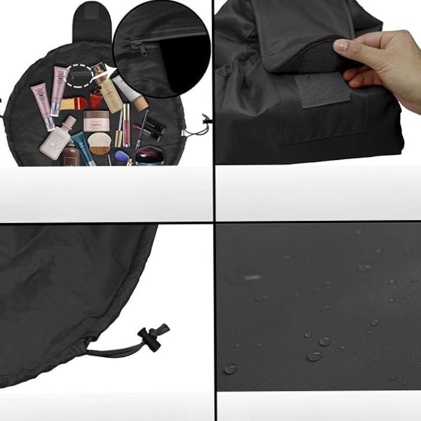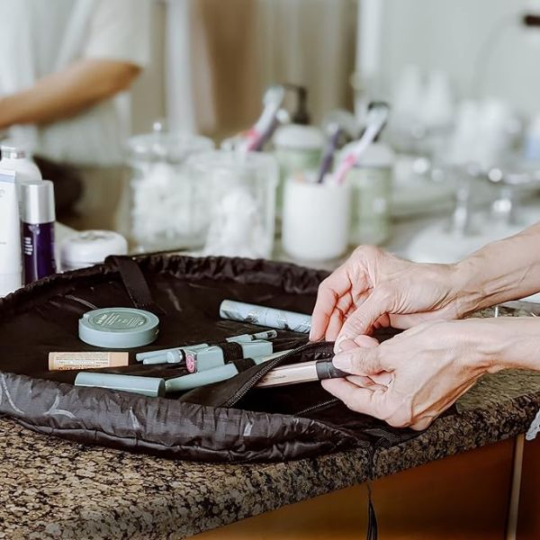 Насладете се на безпроблемно съхранение с GLAMSY. Просто издърпайте шнура, за да сгънете чантата до компактен, удобен за пътуване размер. Тя е идеална за раницата или багажа ви и съхранява козметичните ви инструменти подредени и защитени от повреда. Със своя гигантски капацитет за съхранение и удобство, този вълшебен калъф е задължителен аксесоар за скриване на всичките ви принадлежности за грижа за кожата.