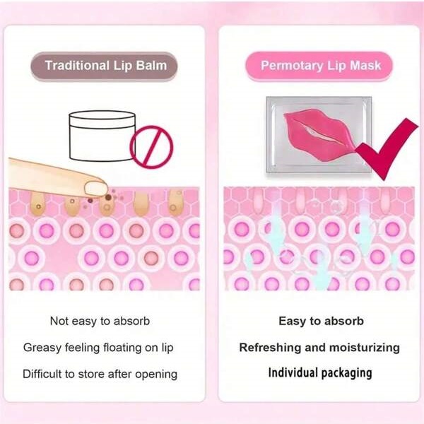 Маската за устни се разтваря постепенно при телесна температура, като бързо прониква в кожата, за да достави хранителни вещества и влага,