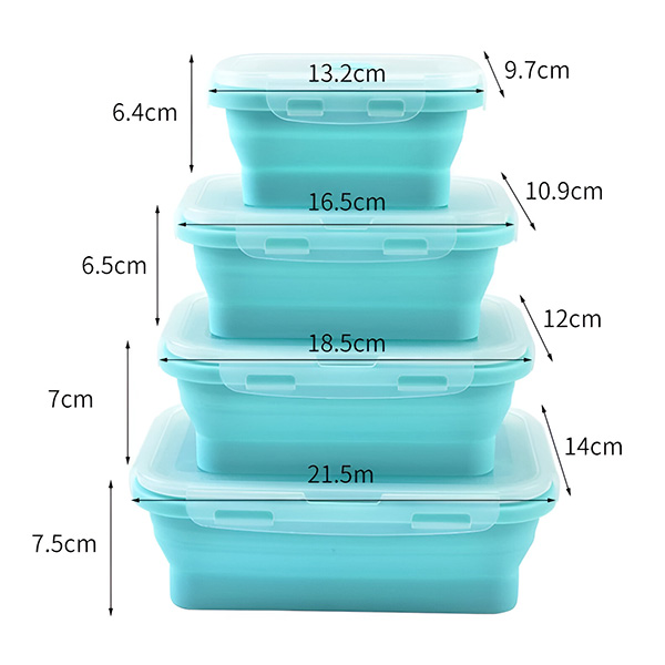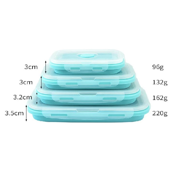 📦 Пакетът Включва: 4x Сгъваеми Силиконови Контейнери (350 ml, 500 ml, 800 ml, 1200 ml)
