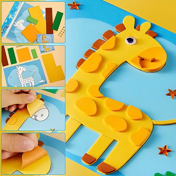 Стикерите „Направи си сам“ са много триизмерни, със самозалепващ се гръб. Когато са готови, децата могат да ги залепят на стената, за да украсят къщата си, или да ги съхранят като мил спомен.