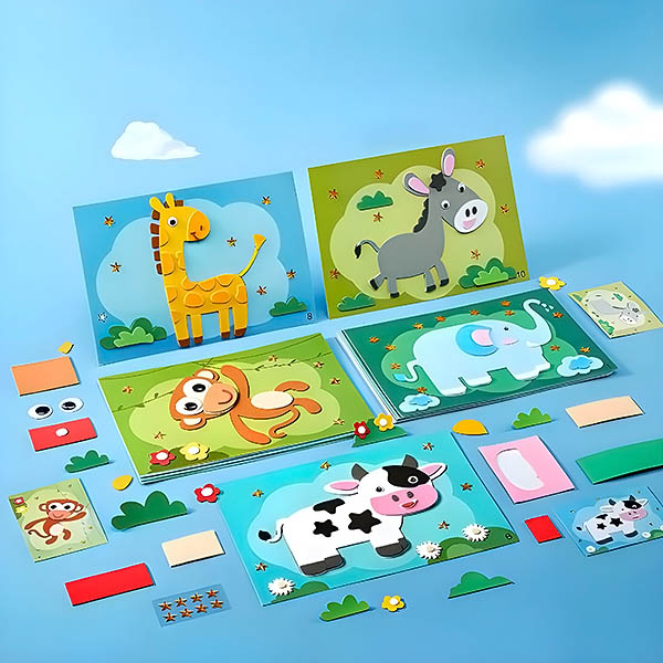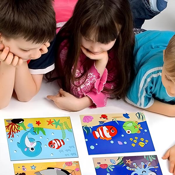 STICKYFUN имат ясно изразени слоеве и богати цветове, които трябва да се залепят слой по слой. Игрите със стикери могат да подобрят способността на децата да разпознават цветовете, да тренират образното мислене и да подобрят физическата координация и способността за решаване на проблеми.