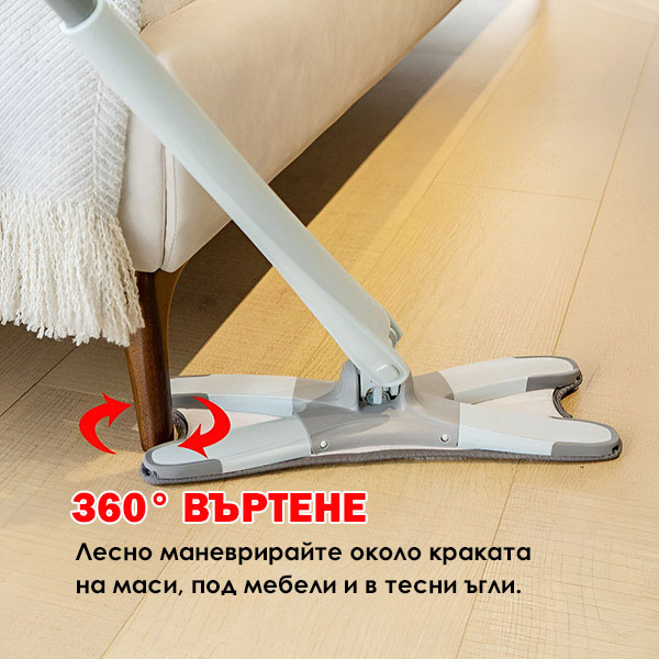 Гъвкавата, огъваща се глава на мопата лесно достига тесни пространства—под мебели, зад тоалетни, около краката на мебелите и в ъглите—така че вие не трябва.