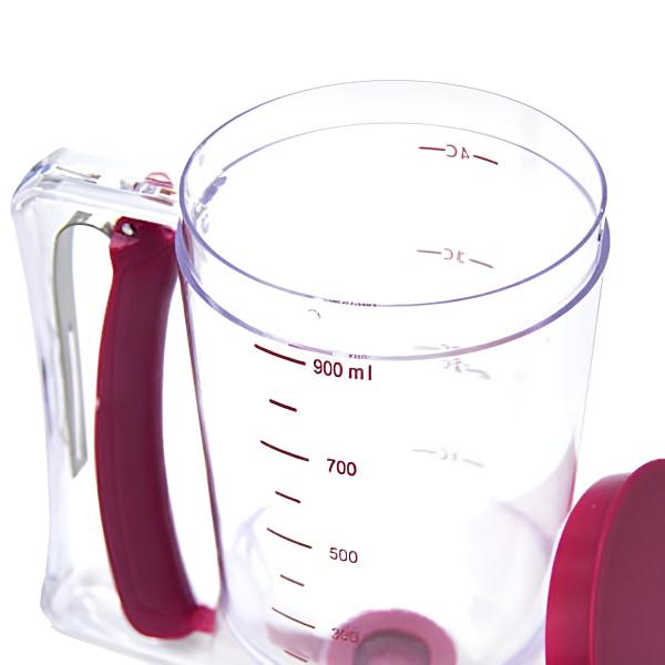 Маркировките за измерване върху контейнера позволяват лесно и последователно порциониране. Постигнете перфектни палачинки, гофрети, омлети и други с точност.