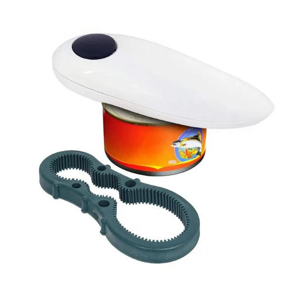 Отваряйте без усилие всяка кутия с едно натискане на бутона!🥫 Перфектна за всички размери кутии, тази електрическа отварачка осигурява гладки и безопасни ръбове. Този компактен, преносим комплект включва автоматична отварачка за консерви и ръчна отварачка за бутилки. Безопасни и идеални както за пикници, така и за кухни.